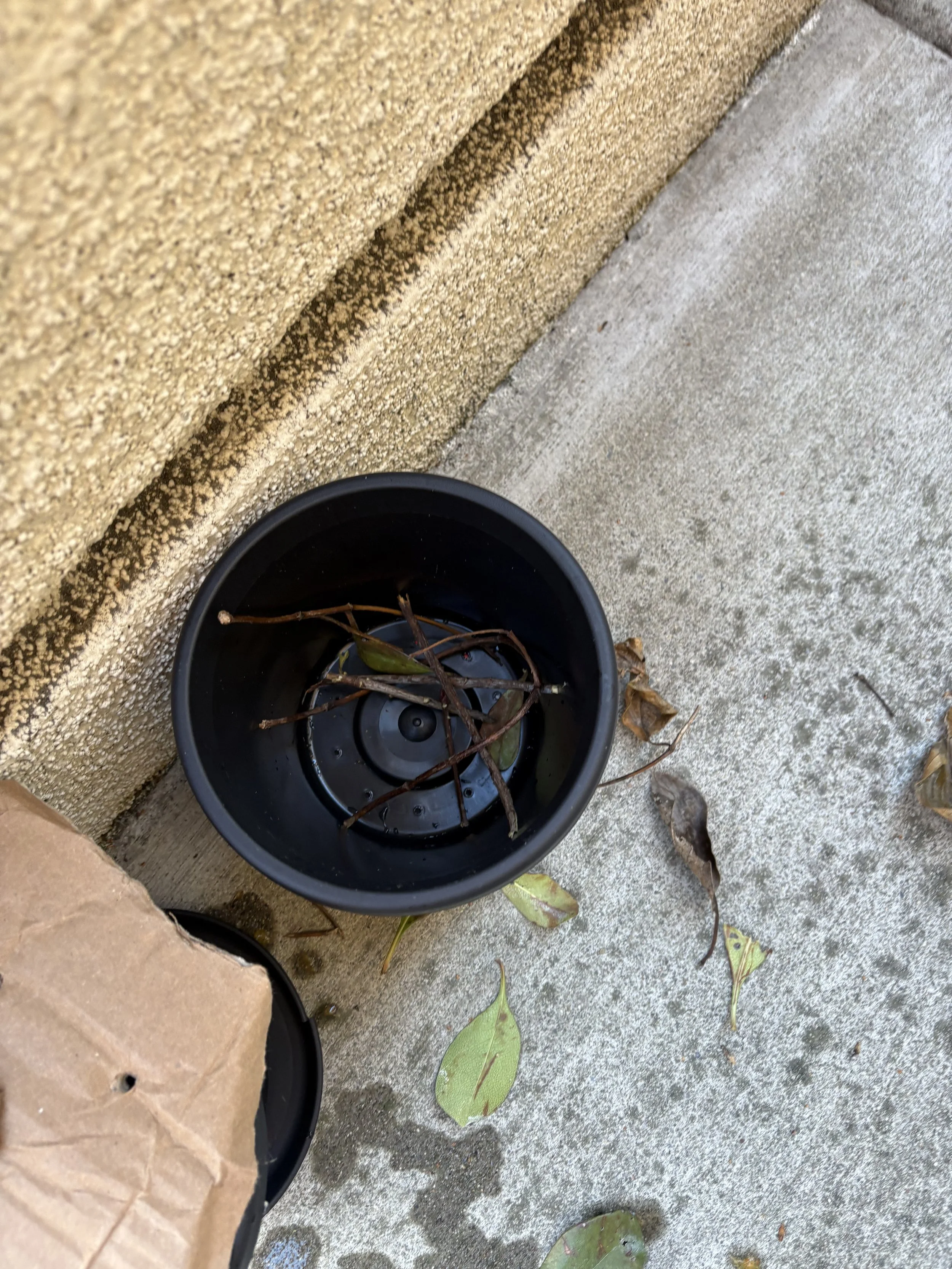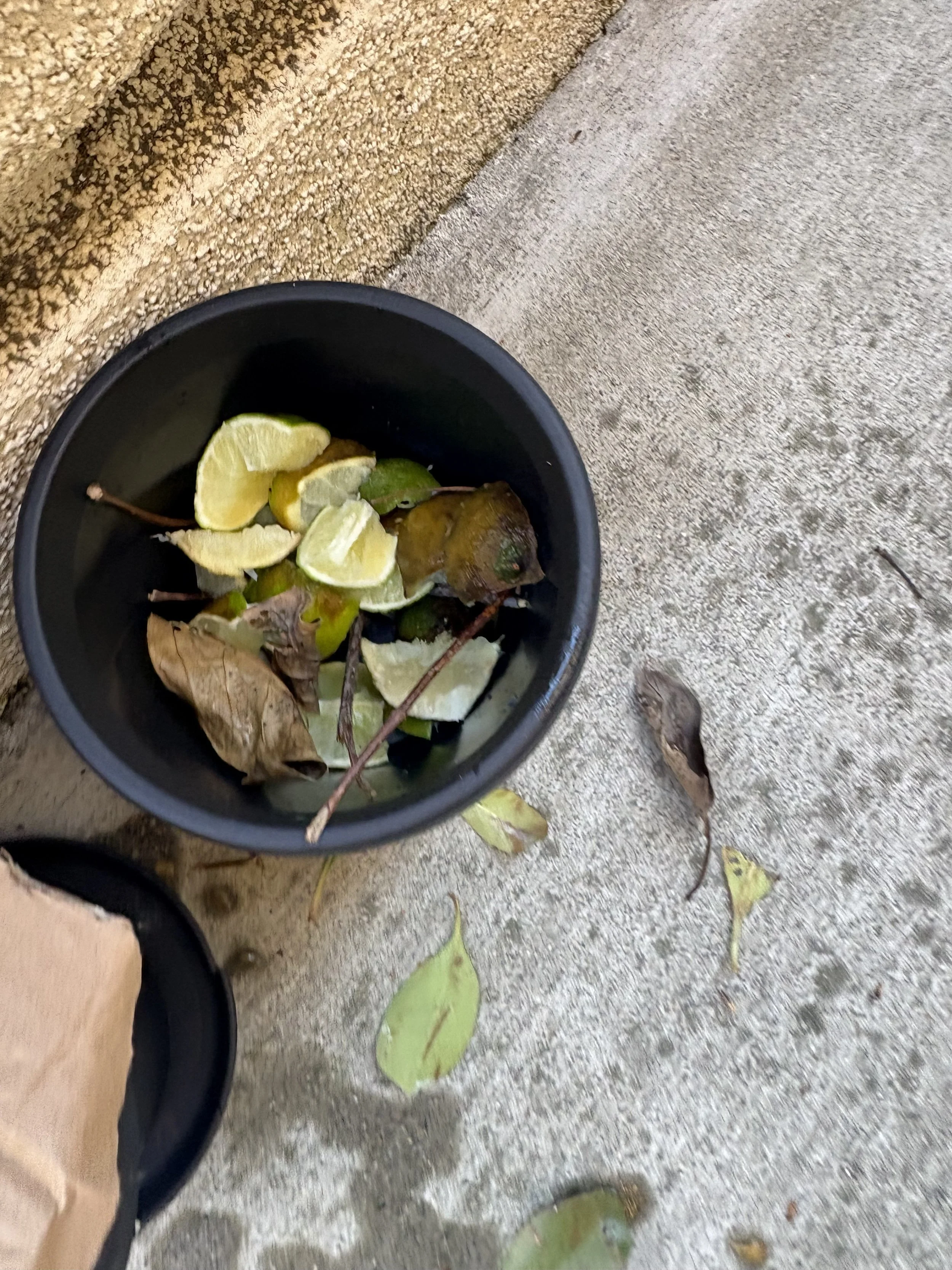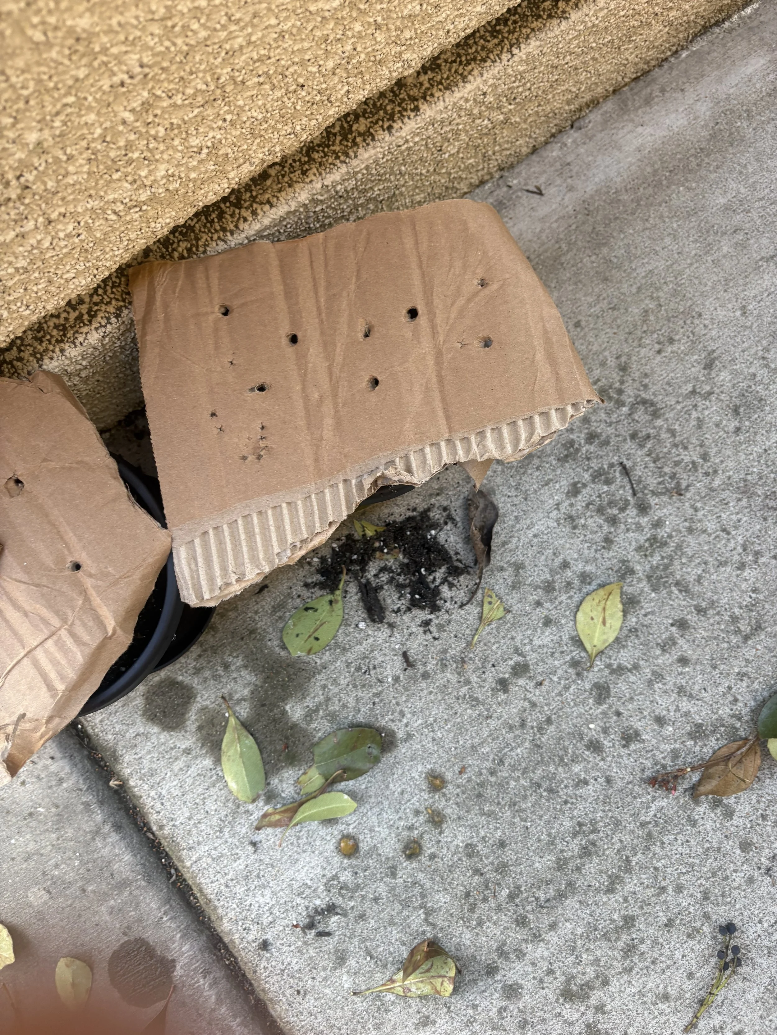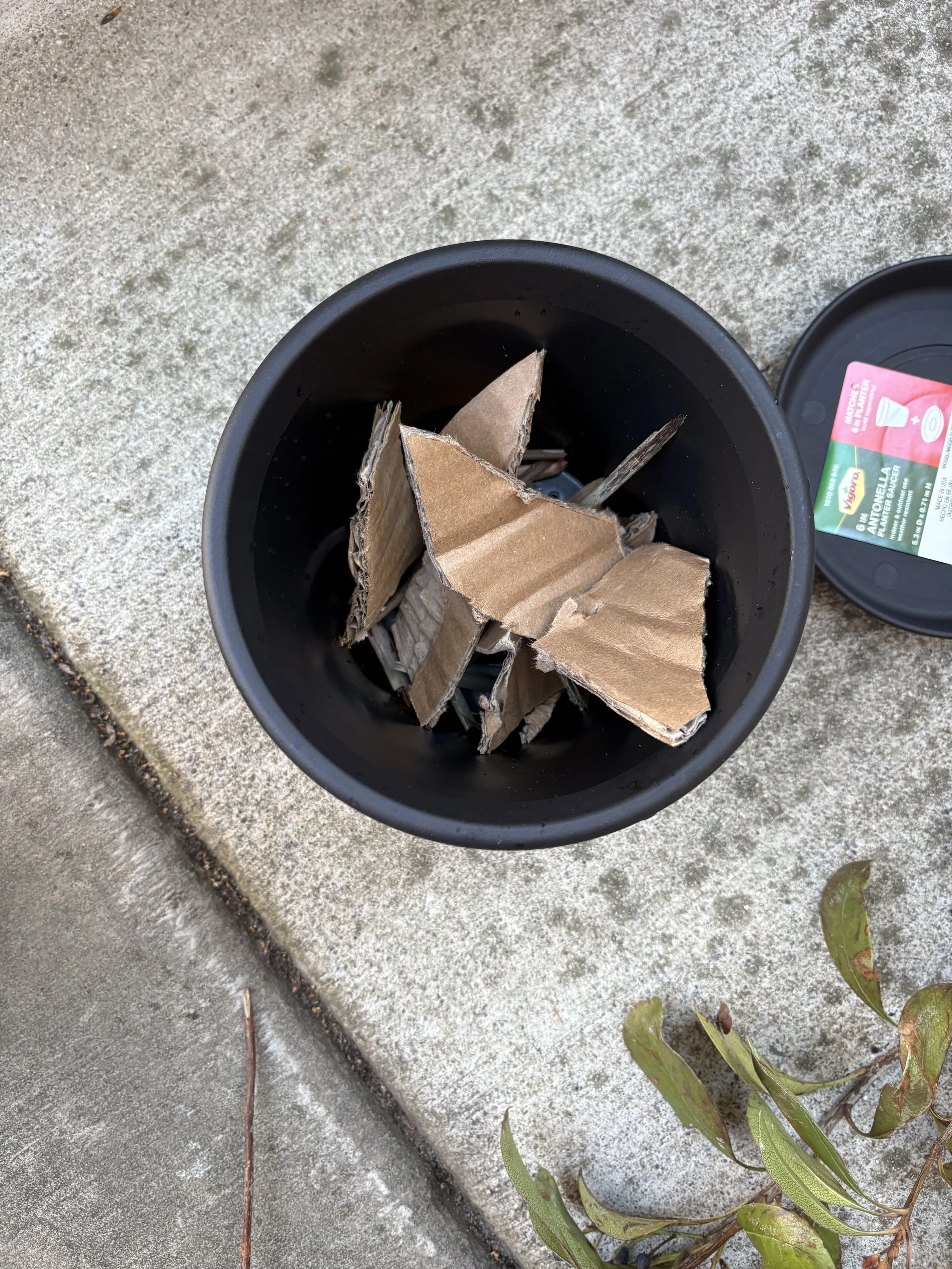 I then commenced with the second portion which was the blended portion. I cut fruit up and put it into a blender. Once turned into a liquid state I used the same process of layering. I layered the bottom with twigs, then I used leftover cardboard from a box for the browns, added my puree in for the greens, the layered with soil, and watered. For air flow I got another piece of cardboard and punched holes in it and placed it in top of the pot. This method of composting surprising decomposed really fast in the first couple of days. Next month I’ll compare each soils ability for planting and we will see if faster=better in this case.